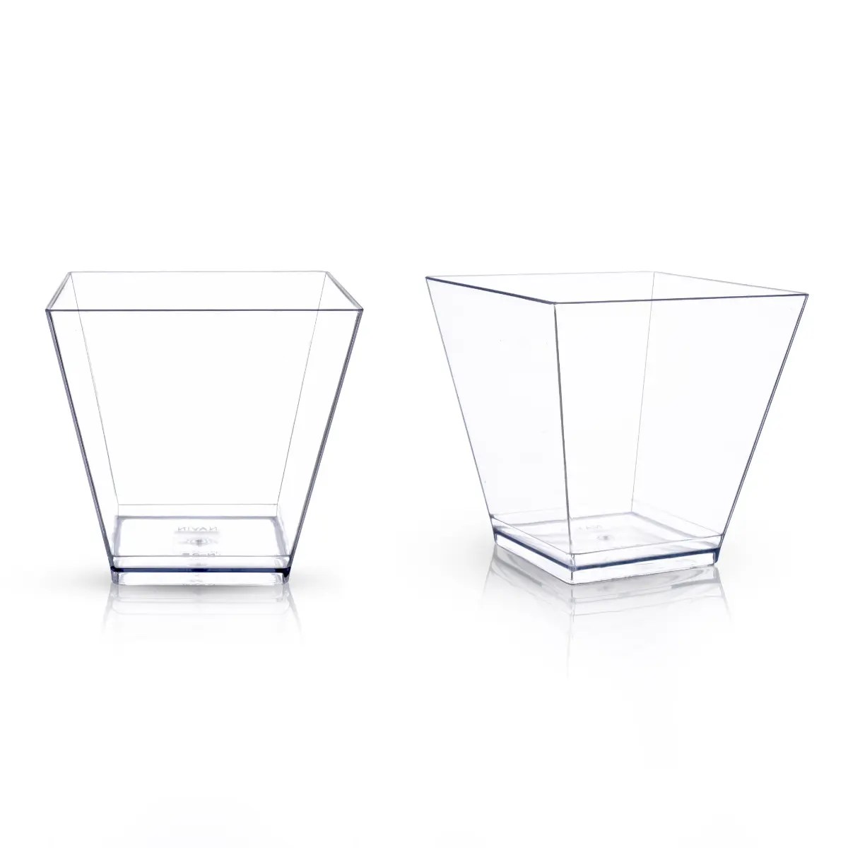 The sleek, modern square design adds a touch of elegance to any presentation. Furthermore, they combine the convenience of disposable cups with the look of glass, creating a polished appearance without extra cleanup. Perfect for buffets, cocktail parties, and tasting menus.